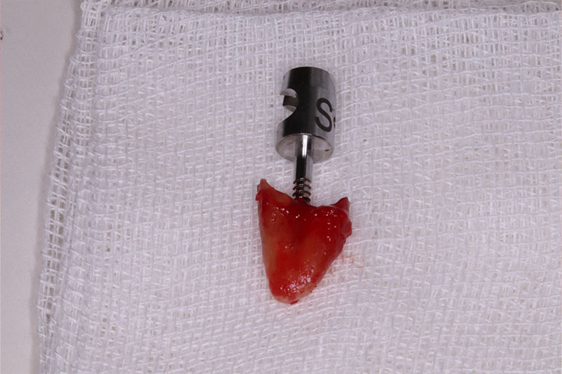 またインプラント症例①でも行ったように抜歯窩の保存をするために、抜歯時にPRGFを抜歯窩に充填しました。