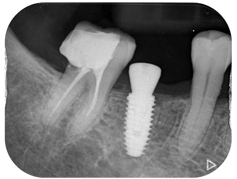 治療内容:右下6に対して抜歯およびPRGFを充填して、治癒を待ってからインプラント治療を行いました。